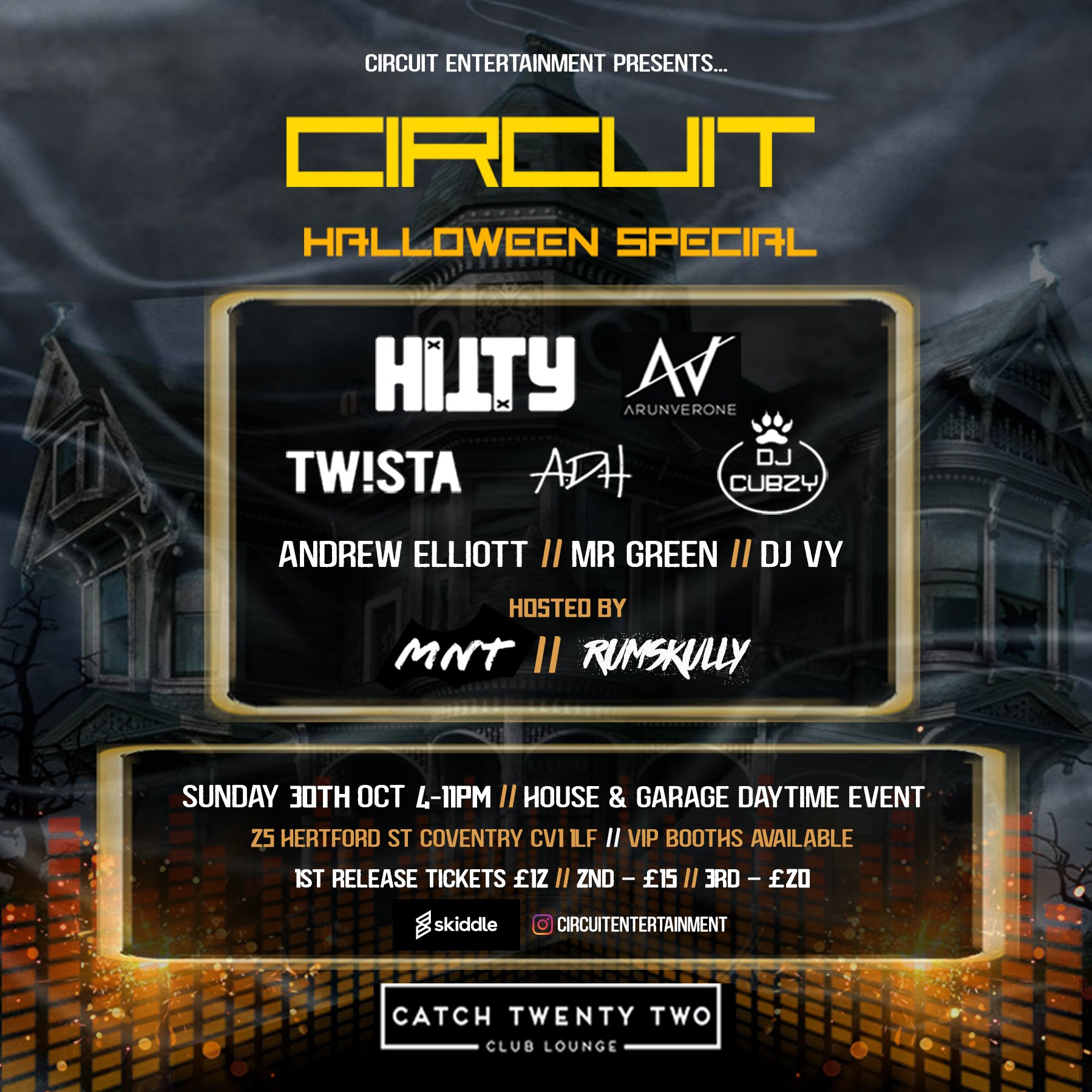 Circuit Halloween Special Tickets Catch Twenty Two Club Lounge Coventry Sun 30th October 2022 Lineup