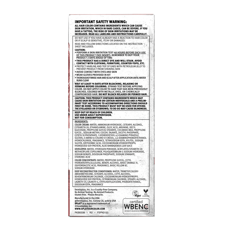 Amazon Com Splat Naturals Semi Permanent Red Hair Dye 100 Vegan Cruelty Free No Bleach Required Free Of Ammonia Ppd Parabens Sulfates 6 Oz Beauty Personal Care